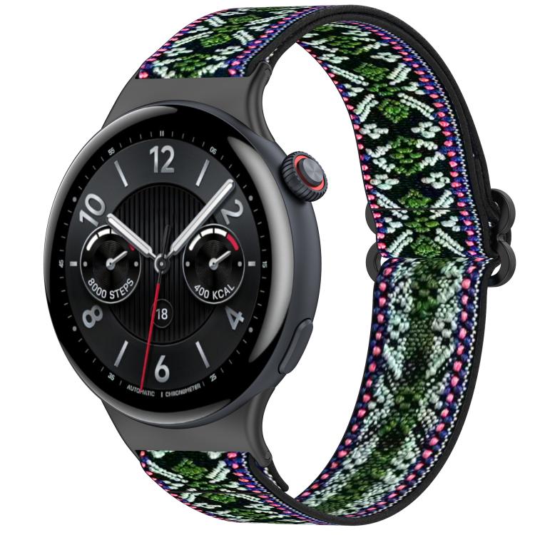 Correa de nailon trenzado elástico de estilo étnico para VivoWatch 5 / iQOO Watch 5 (verde y morado)