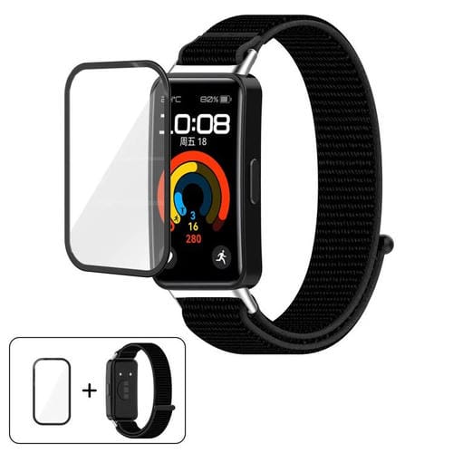 Correa de reloj con cierre de velcro de nailon y película curva 3D para Huawei Band 8/8 NFC (negra)