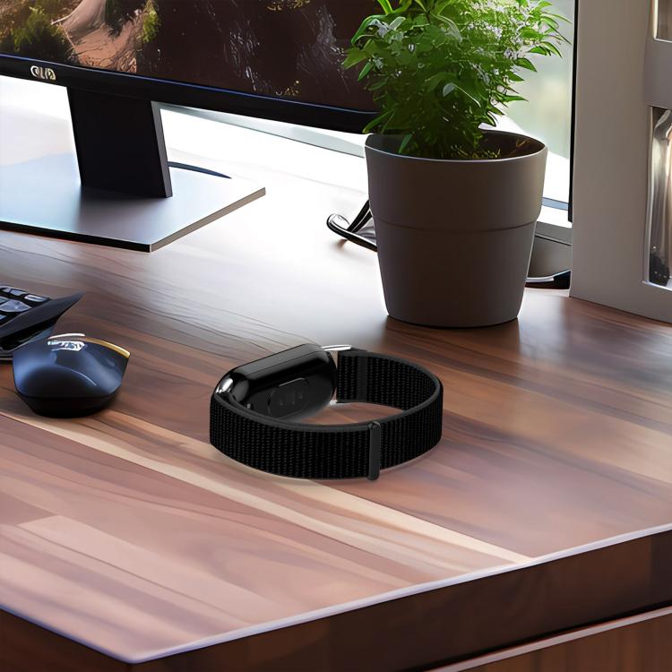 Correa de reloj con cierre de velcro de nailon y película curva 3D para Xiaomi Smart Band 9/9 NFC (Camello)