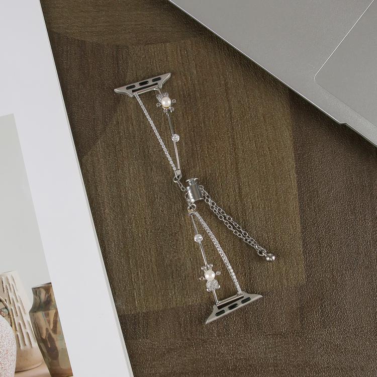 Correa de reloj con incrustaciones de cobre y circonita cúbica para Apple Watch de 46 mm, 49 mm, 45 mm y 44 mm (plata)