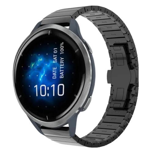 Correa de Reloj Aleación con Hebilla de Mariposa para Garmin Venu 2 22mm (Negra)