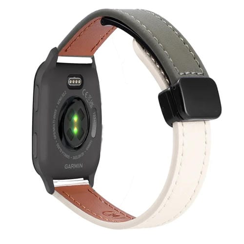 Correa de Reloj de Cuero Microfibra con Hebilla Magnética 20mm para Garmin Venu Sq (Verde Albaricoque y Aguacate)