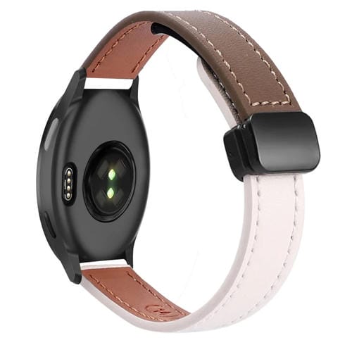 Correa de Reloj Cuero Microfibra 20mm con Hebilla Magnética para Garmin Active 5 (Albaricoque y Caramelo Macchiato)