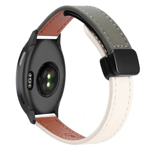 Correa de Reloj Cuero Microfibra 20mm con Hebilla Magnética para Garmin Active 5 (Verde Albaricoque y Aguacate)