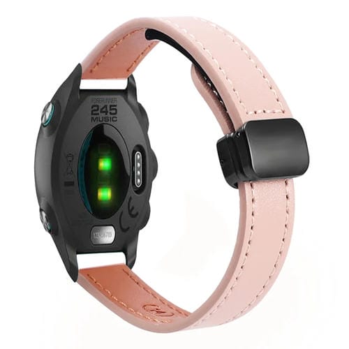 Correa de Reloj de Cuero Microfibra 20mm con Hebilla Magnética para Garmin Forerunner 245 (Rosa Sakura)