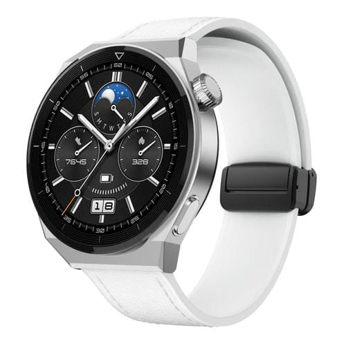 Correa de Reloj de Cuero y Silicona con Hebilla Magnética Negra 22mm (Blanco)