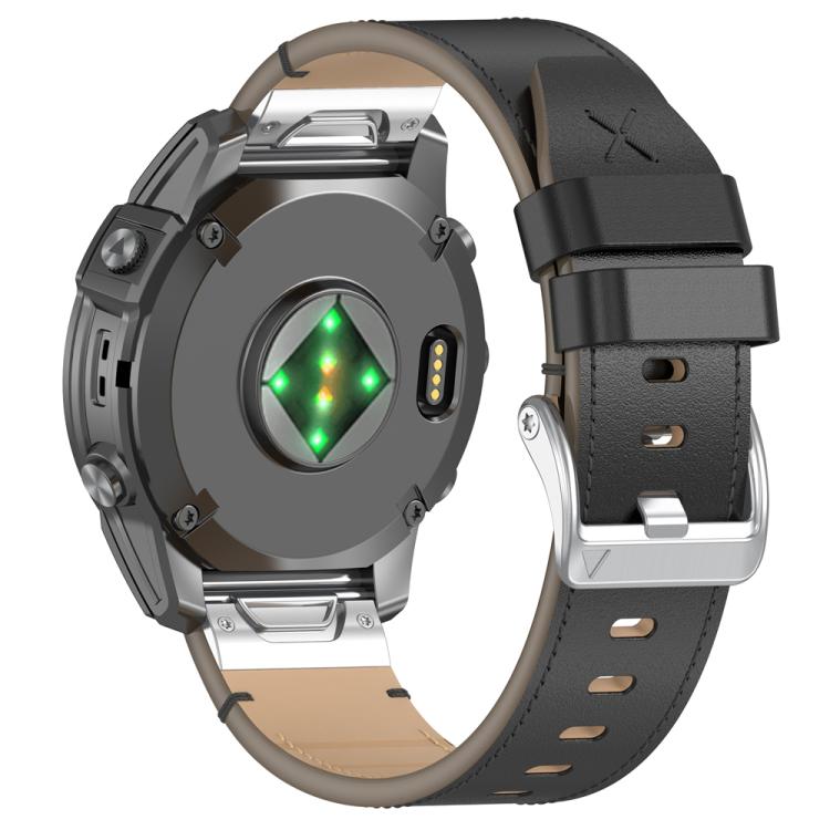 Correa de reloj de liberación rápida de cuero genuino cosida para reloj Garmin de 26 mm (negro y plateado)