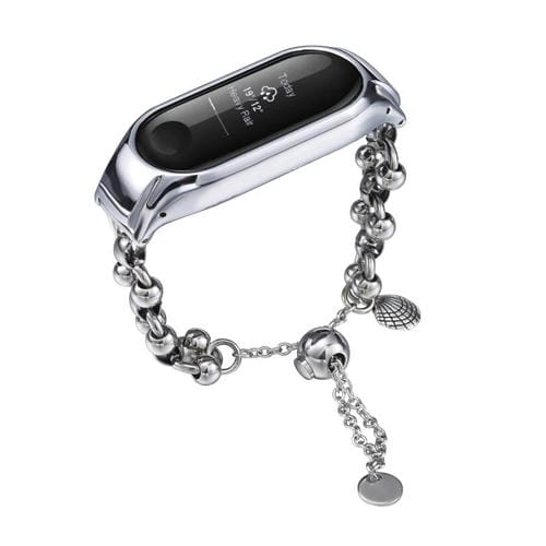 Correa de Reloj Metal con Cuentas para Xiaomi Mi Band 3/4 (Plateada Doble Cuenta)