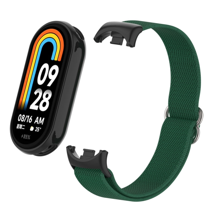 Correa de reloj de nailon elástica lisa con tapón de plástico para Xiaomi Smart Band 9/8 (verde militar)