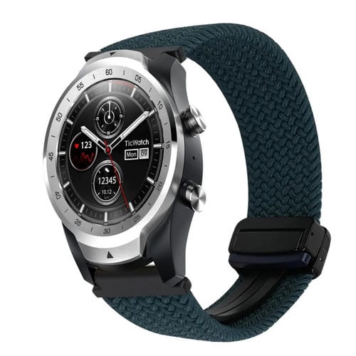 Correa de Reloj Trenzada con Hebilla Magnética 22mm para Ticwatch Pro 2020 (Verde Oscuro)
