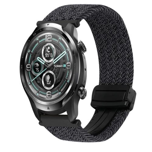 Correa de Reloj Trenzada con Hebilla Magnética 22mm para Ticwatch Pro 2021 (Gris y Negro)