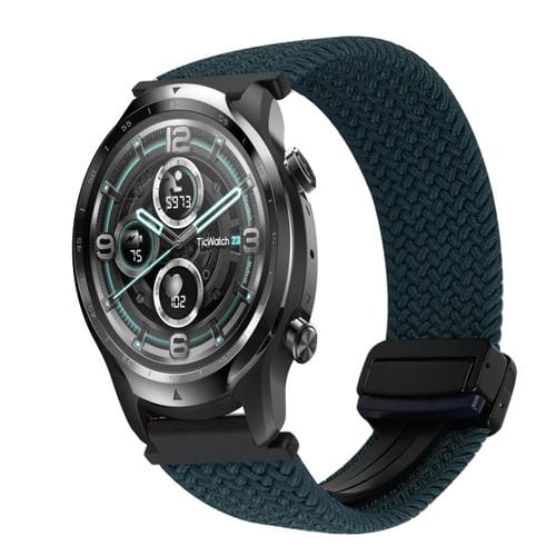 Correa de Reloj Trenzada 22mm para Ticwatch Pro 2021 con Hebilla Magnética (Verde Oscuro)