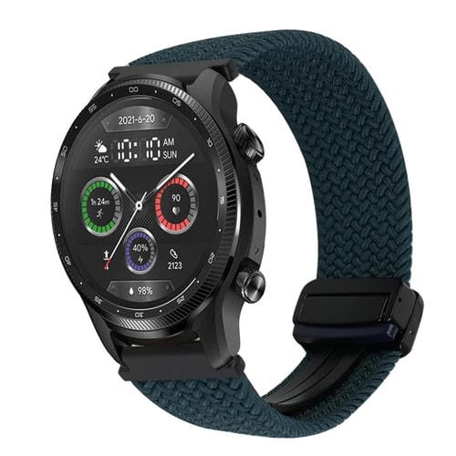 Correa de Reloj Trenzada con Hebilla Magnética 22mm para Ticwatch Pro X (Verde Oscuro)