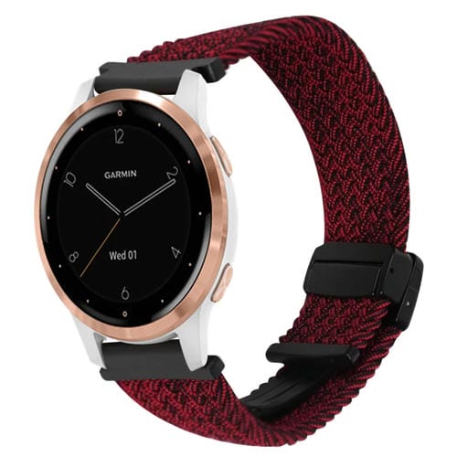 Correa de Reloj Trenzada con Hebilla Magnética para Garmin Active S 18mm (Negra, Arena y Roja)