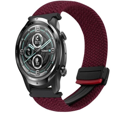 Correa de Reloj Trenzada con Hebilla Magnética para Ticwatch Pro 22mm (Rojo Vino)