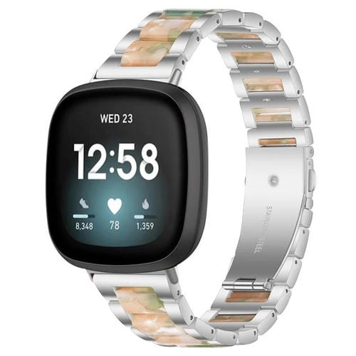 Correa de resina metálica con tres cuentas para Fitbit Versa 4/3/Sense 2/Sense xDfind (verde plateado)