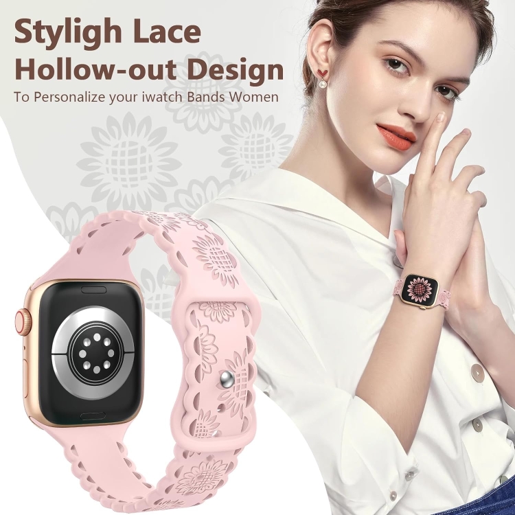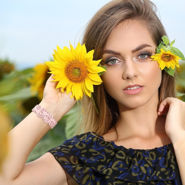 Correa de Silicona Apple Watch Se 2022 40mm con Estampado de Girasoles en Relieve (Rosa)