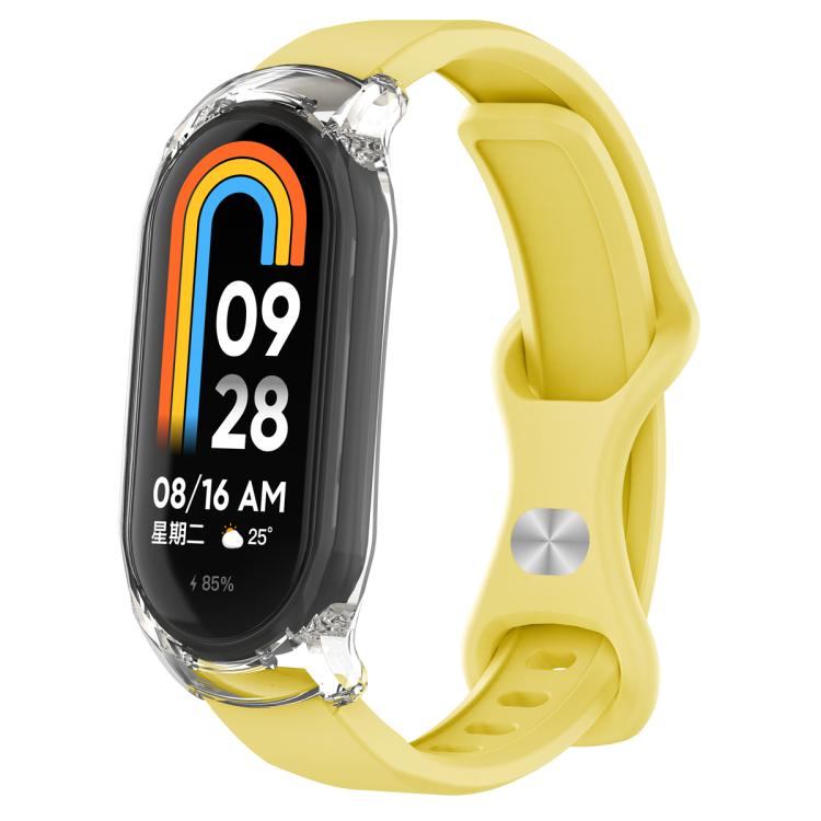 Correa de silicona con hebilla de mariposa para Xiaomi Smart Band 9/9 NFC con funda transparente (amarilla)