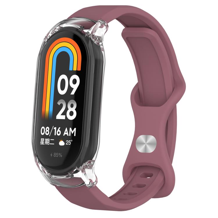 Correa de silicona con hebilla de mariposa y funda transparente para Xiaomi Smart Band 9/9 NFC (morado ahumado)