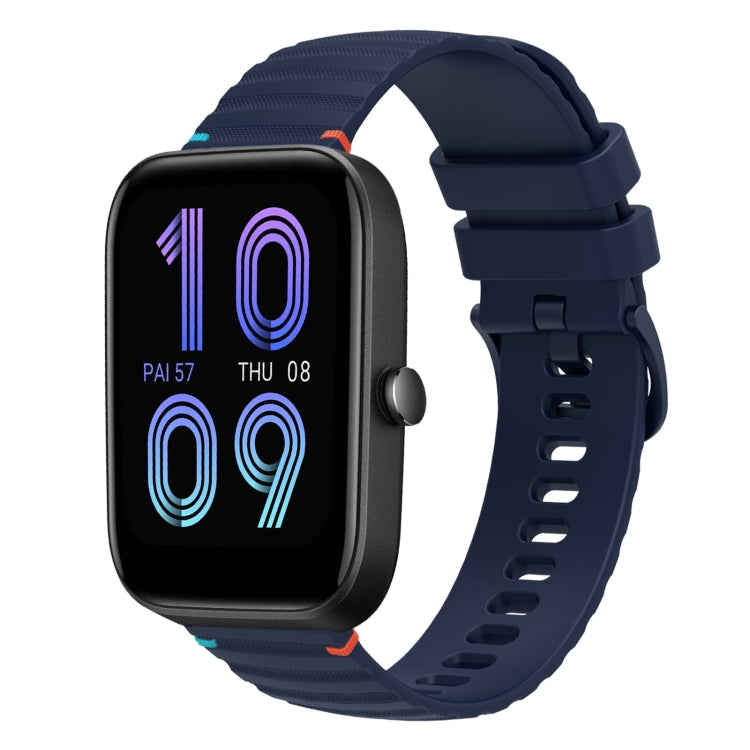 Correa de Silicona Amazfit Bip 3 Pro 20mm con Puntadas Onduladas y Puntos (Azul Marino)