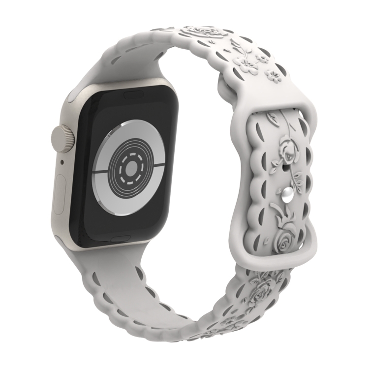 Correa de Silicona con Relieve 3D Encaje Rosa para Apple Watch Se 2022 44mm (Luz de Estrellas)