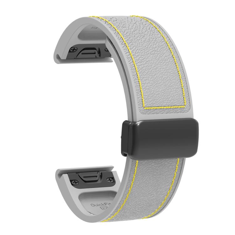 Correa de silicona de liberación rápida con hebilla magnética plegable para Garmin de 22 mm (gris y amarillo)