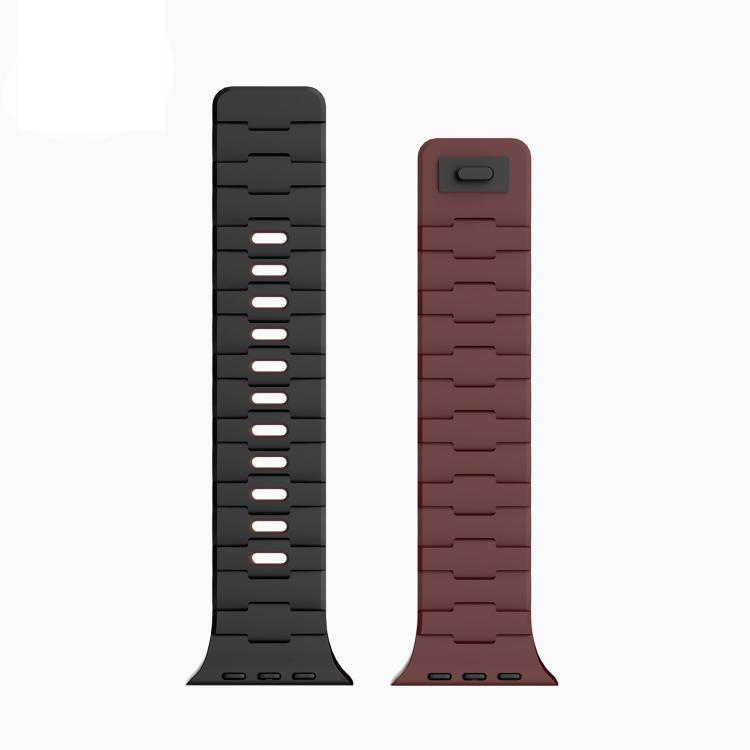 Correa de silicona magnética de un solo pasador con relieve de caballo para Apple Watch de 46 mm / 49 mm / 45 mm / 44 mm (Burdeos y negro)