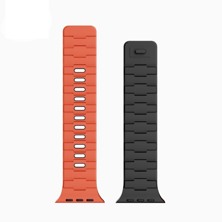 Correa de silicona magnética de un solo pasador con relieve de caballo para Apple Watch de 46 mm / 49 mm / 45 mm / 44 mm (negro y naranja).