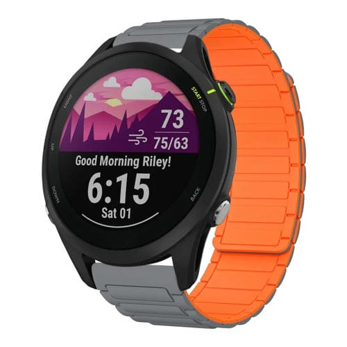 Correa de Silicona Magnética en Forma de I para Reloj Garmin Forerunner 255 22mm (Gris y Naranja)