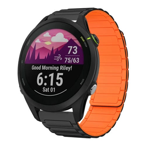 Correa de Silicona Magnética en Forma de I Garmin Forerunner 255 22mm (Negra y Naranja)