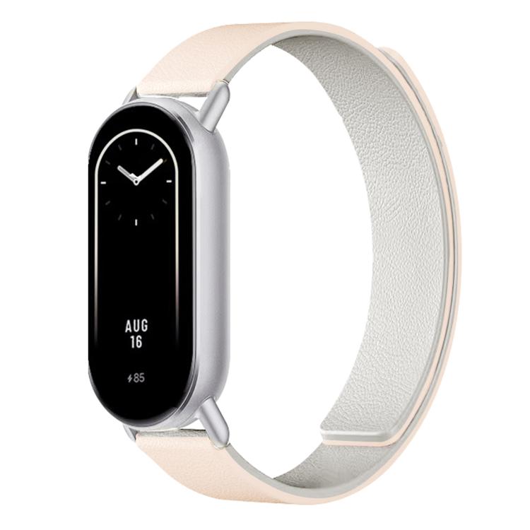 Correa de silicona magnética suave con textura de lichi para Xiaomi Smart Band 10/9/8 (blanco té con leche)
