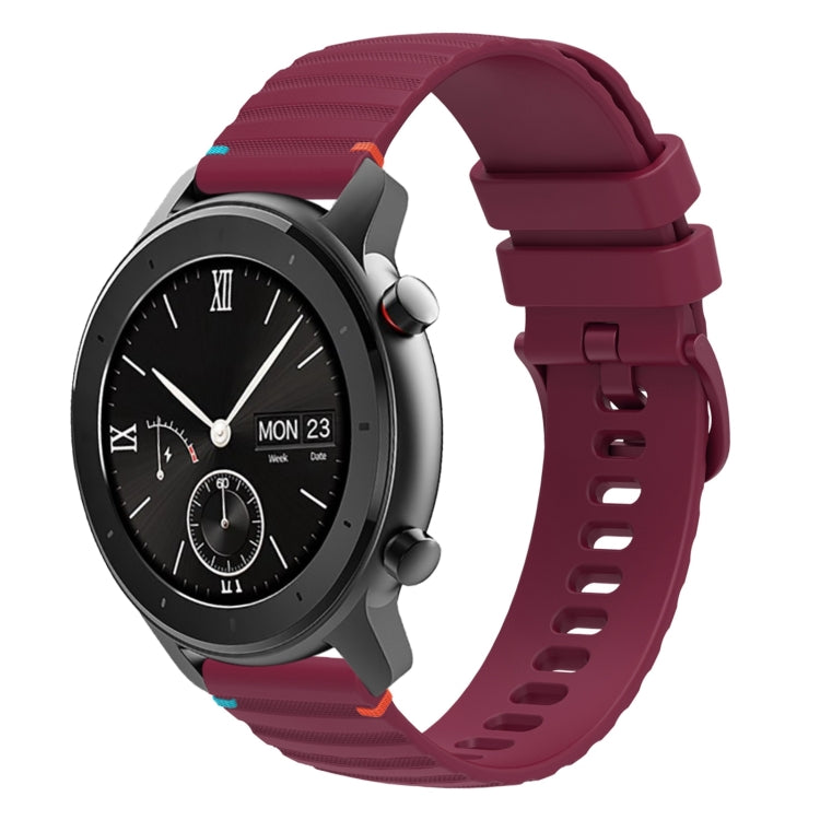 Correa de Silicona Amazfit GTR 42mm 20mm con Puntadas Onduladas (Rojo Vino)