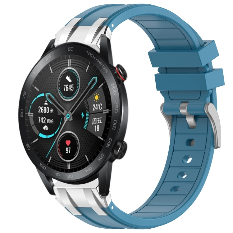For Honor Magic Watch 2 46mm 22mm Silicone Watch Band Strap with Quick Release Silver Buckle (Navy Blue)