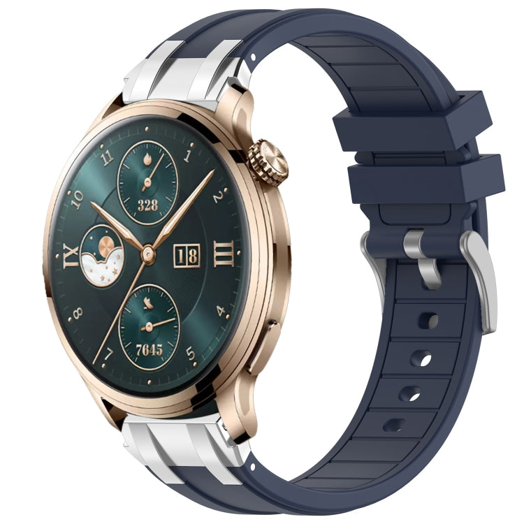 Honor Watch 4 Pro 22mm Silicone Watch Band Strap with Quick Release Silver Buckle (Navy Blue)