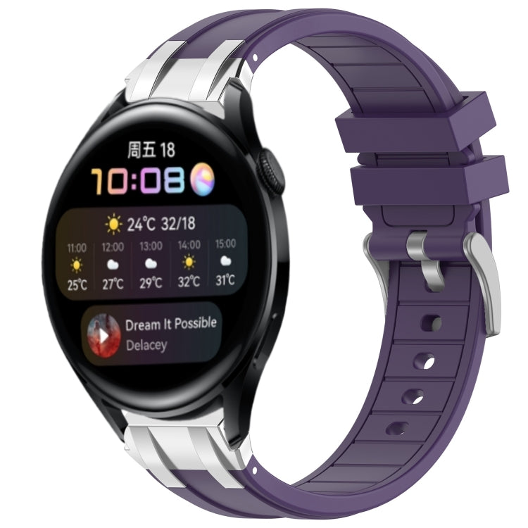 Huawei Watch 3 22mm Silicone Watch Band Strap with Quick Release Silver Buckle (Purple)