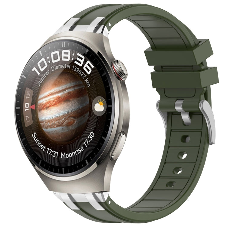 Huawei Watch 4 22mm Silicone Watch Band Strap with Quick Release Silver Buckle (Olive Green)