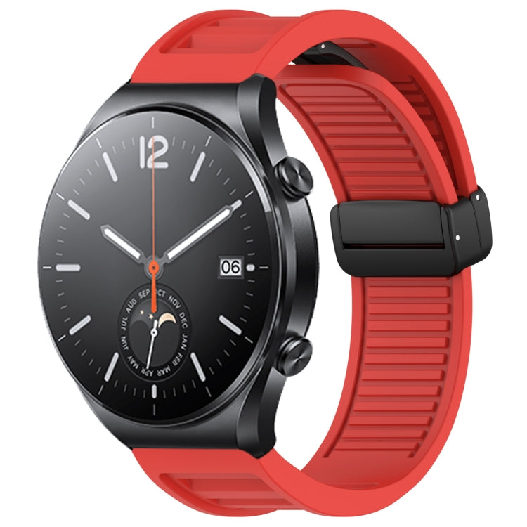 Correa de silicona para reloj Xiaomi Watch S1 con hebilla magnética y ventana ciega de 22 mm (roja)