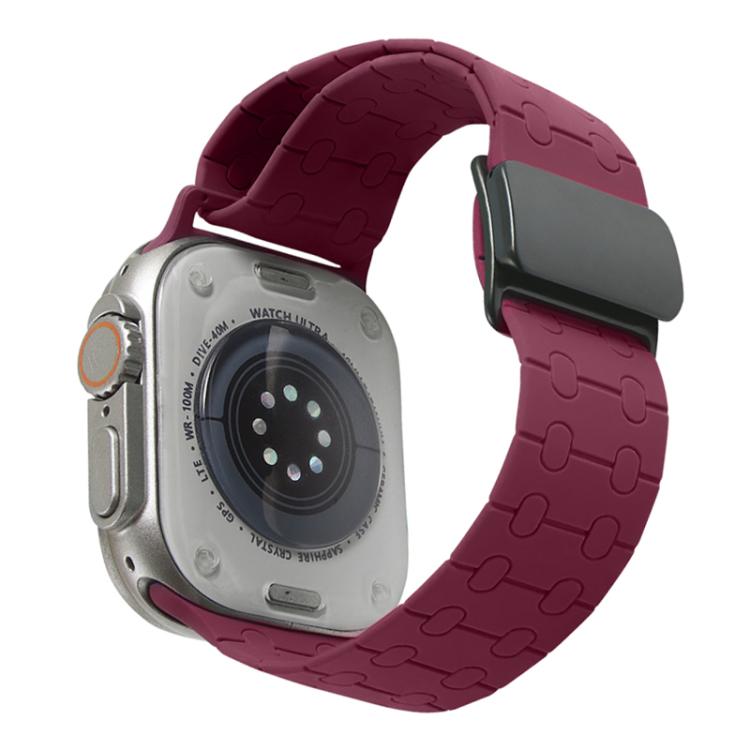 Correa de silicona transpirable con hebilla magnética para Apple Watch de 46 mm, 49 mm, 45 mm y 44 mm (rojo vino)