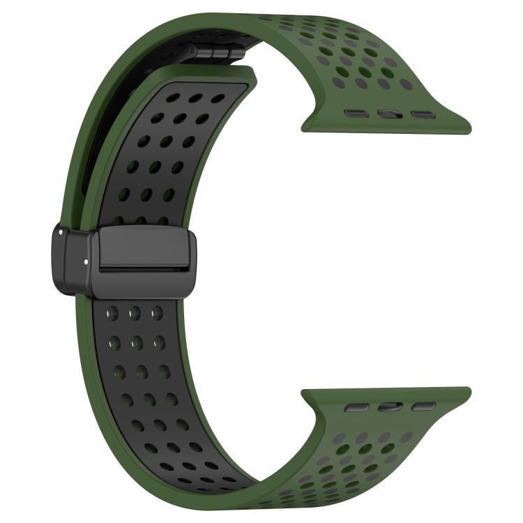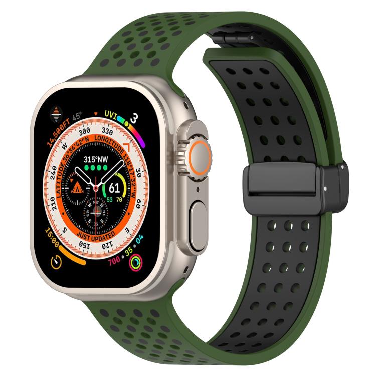Correa de silicona transpirable con hebilla magnética para Apple Watch de 46 mm, 49 mm, 45 mm y 44 mm (verde militar y negro).