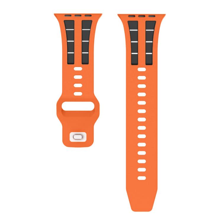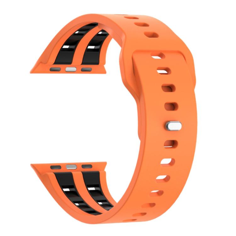 Correa de silicona transpirable de doble fila para Apple Watch de 46 mm, 49 mm, 45 mm y 44 mm (naranja y negro)
