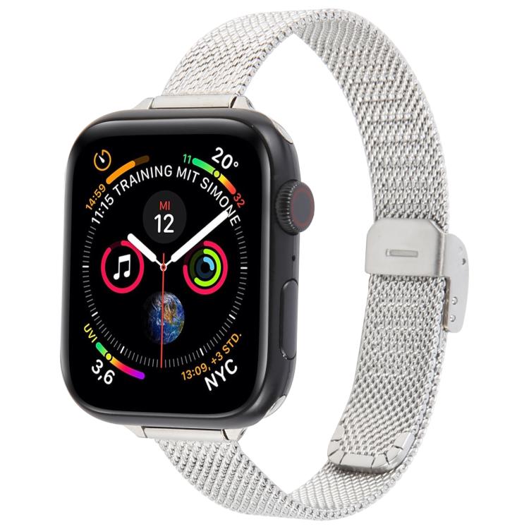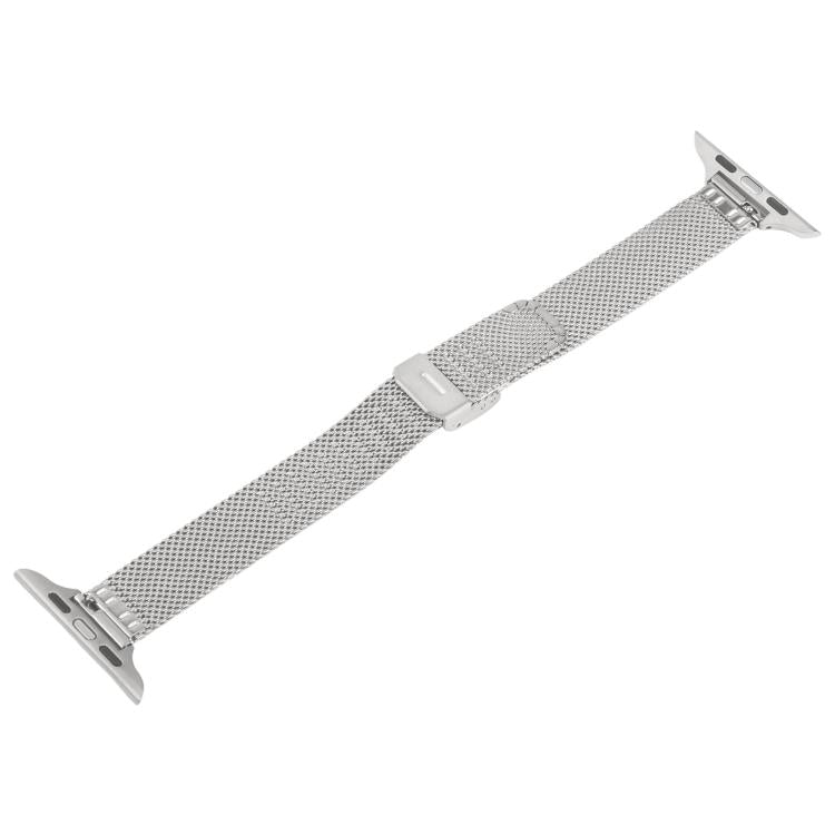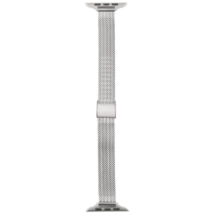 Correa fina de metal milanesa con relieve y hebilla integrada para Apple Watch de 46 mm, 49 mm, 45 mm y 44 mm (plateada)