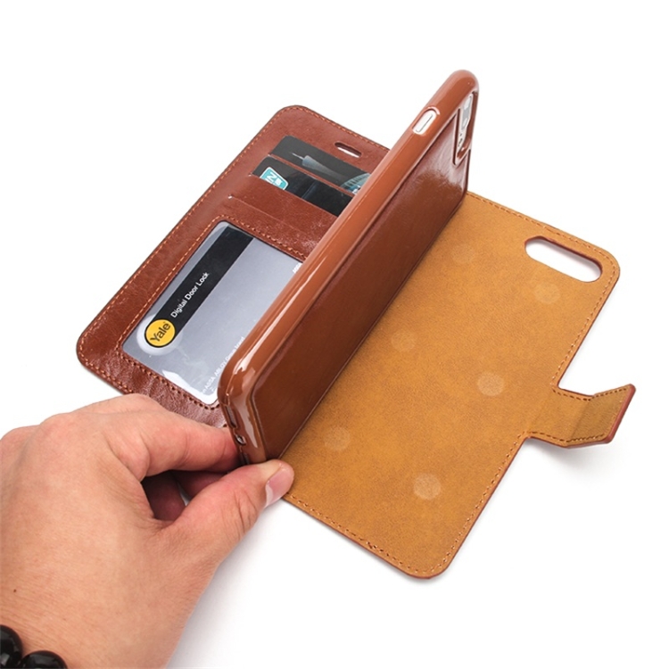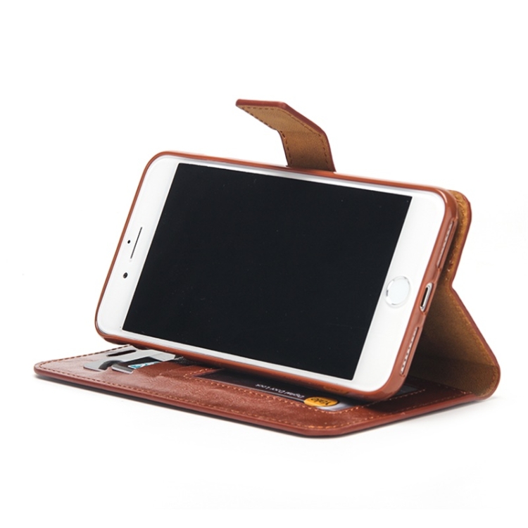 Funda de cuero Crazy Horse Texture para iPhone 8 Plus 7 Plus con soporte y ranuras para tarjetas (Brown)