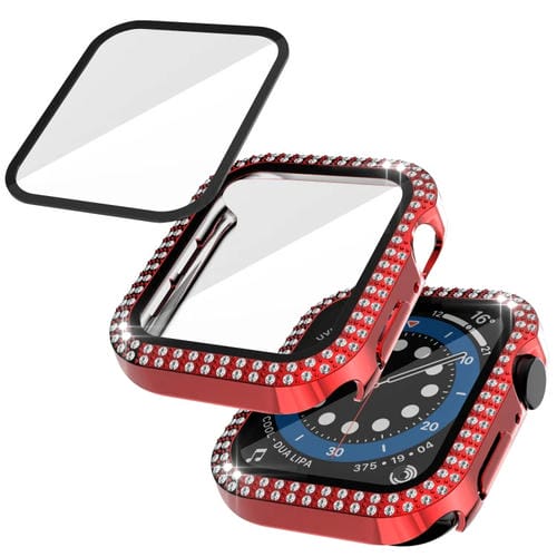 Funda de Reloj con Vidrio Templado + Diamante Diamond PC para Apple Watch Series 6, SE, 5, 4 40mm (Rojo)