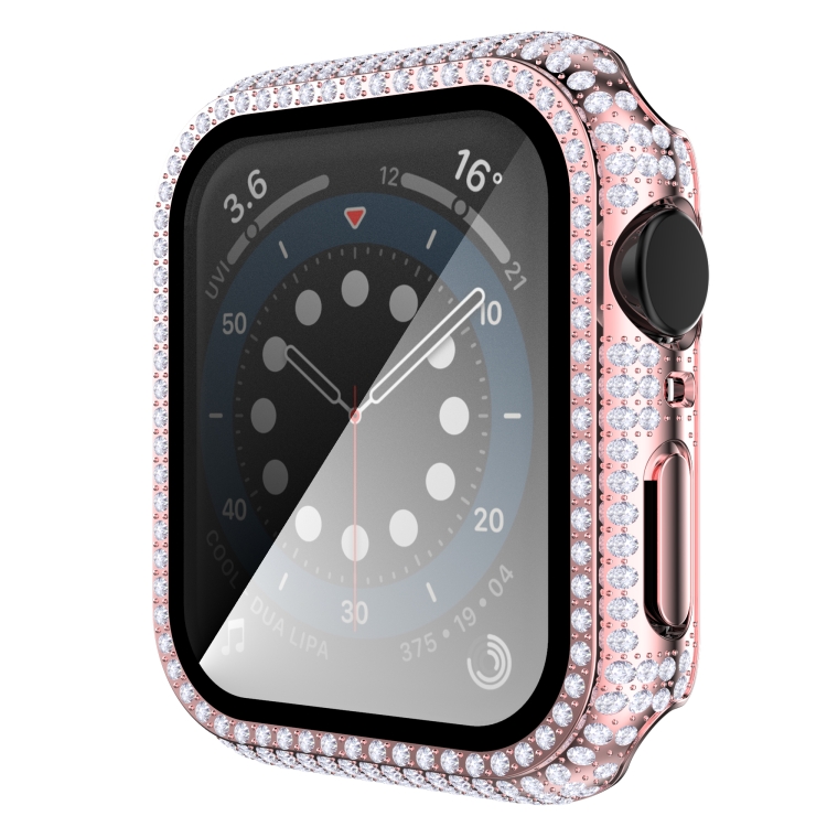 Diamond PC funda de vidrio templado para Apple Watch Series 6 SE 5 4 40mm (Rosa)