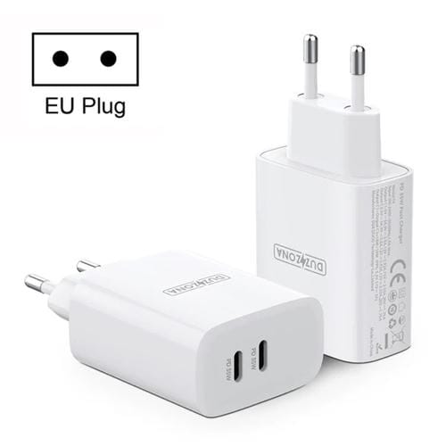 Cargador de viaje Duzzona T4 Pd 35W con dos puertos Tipo C (Blanco)