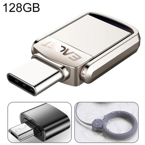 Memoria USB Eaget 128G USB 3.1 + USB-C Metal Twister Flash U Disco con Adaptador Micro USB y Cordón