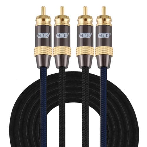 El Cable de audio coaxial EMK 2 x RCA Macho a 2 x RCA Macho chapado en oro es un componente diseñado para la transmisión de audio Digital en sistemas de alta fidelidad. Con una longitud de 3 metros y un revestimiento trenzado de nailon en color Negro, este Cable es compatible con dispositivos como televisores, amplificadores, sistemas de cine en casa, reProductores DVD y Cajas de TV en red. Su función principal es garantizar una transmisión de Señal estéreo clara y estable, minimizando las interferencias gracias a su diseño anti-ruido y protección avanzada. La capa chapada en oro en los Conectores asegura una mejor conductividad y resistencia a la oxidación, lo que contribuye a mantener la calidad del audio en el tiempo.