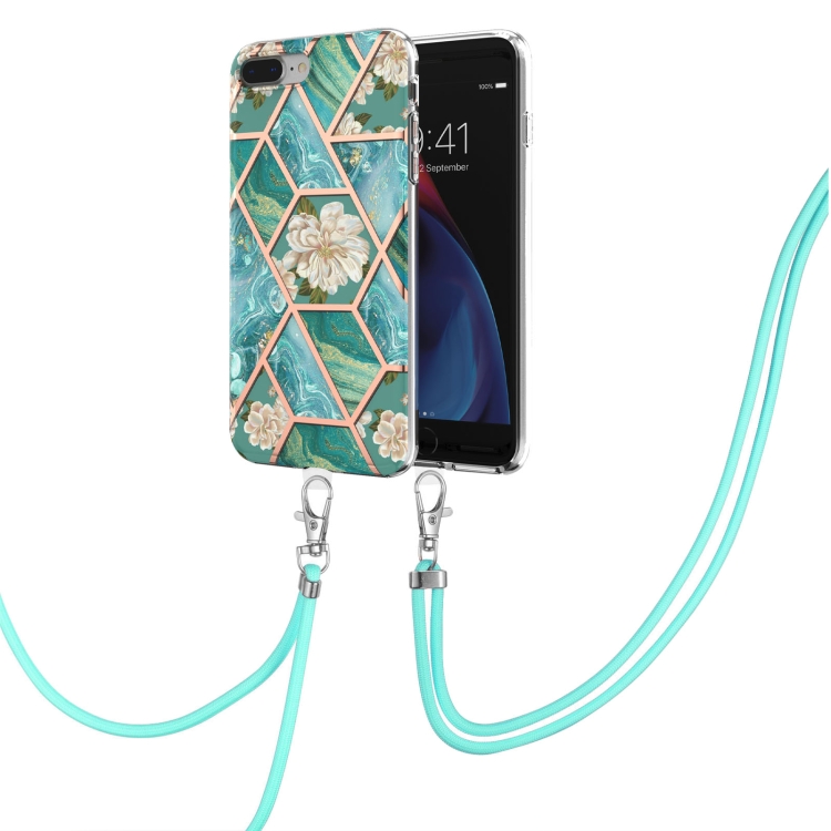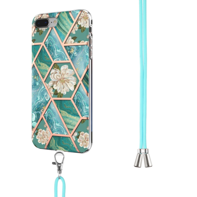 Funda TPU Empalme Galvanización Patrón Flores Mármol para iPhone 8 Plus / 7 Plus (Flor Azul)