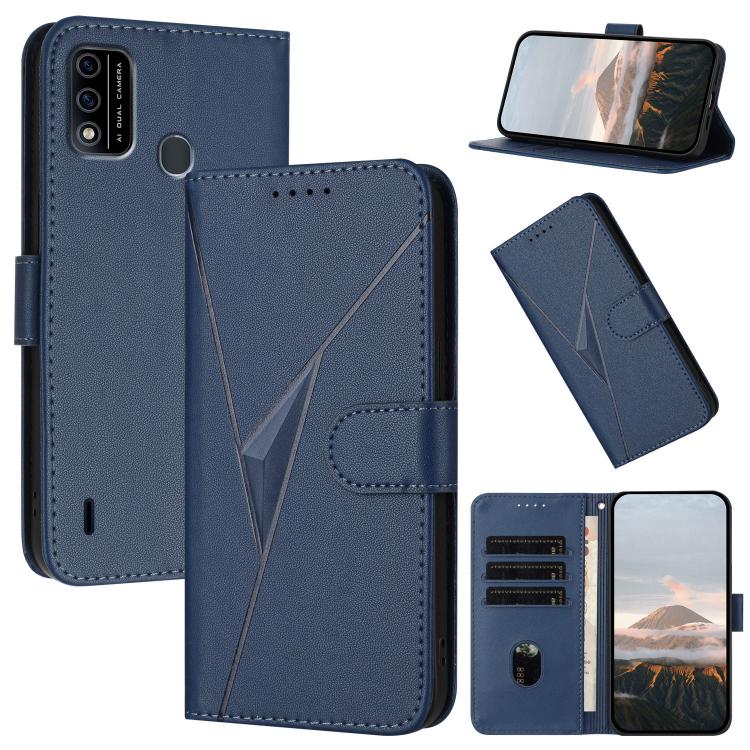 Estuche de Cuero con Hebilla y Diseño Triangular para Teléfono Itel A48 (Azul Real)