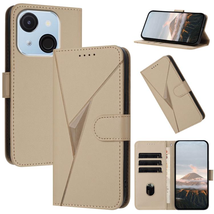 Estuche de Cuero con Hebilla y Diseño Triangular para Teléfono Itel A50C (Dorado)